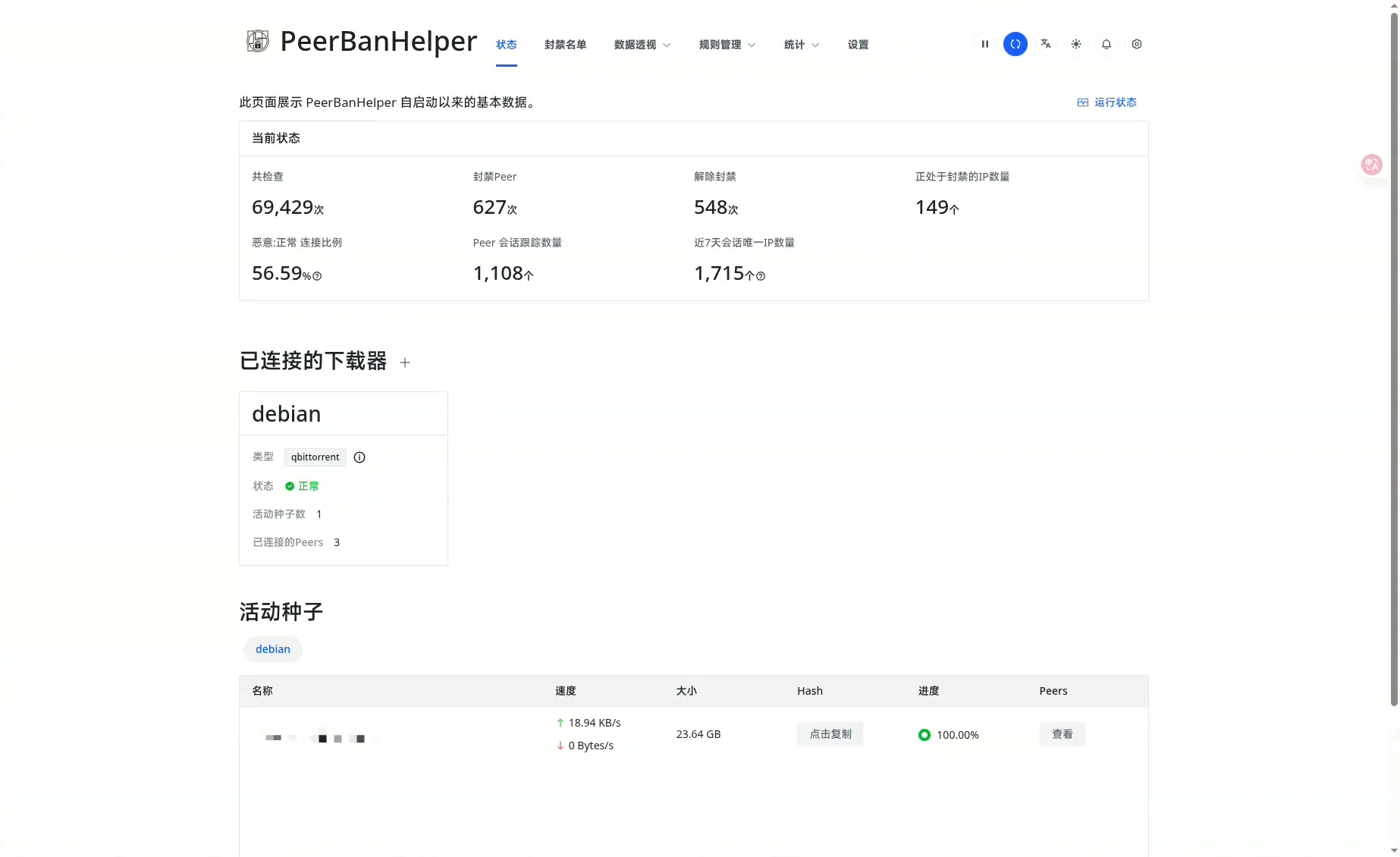 对于迅雷 qBee 增强版依然可以拦截,但是对其他行为并无太多用处, 需要使用 PeerBanHelper 以下简称 PBH, 当然如果你之前使用的增强版也可以加上 PBH 来优化反吸血。
