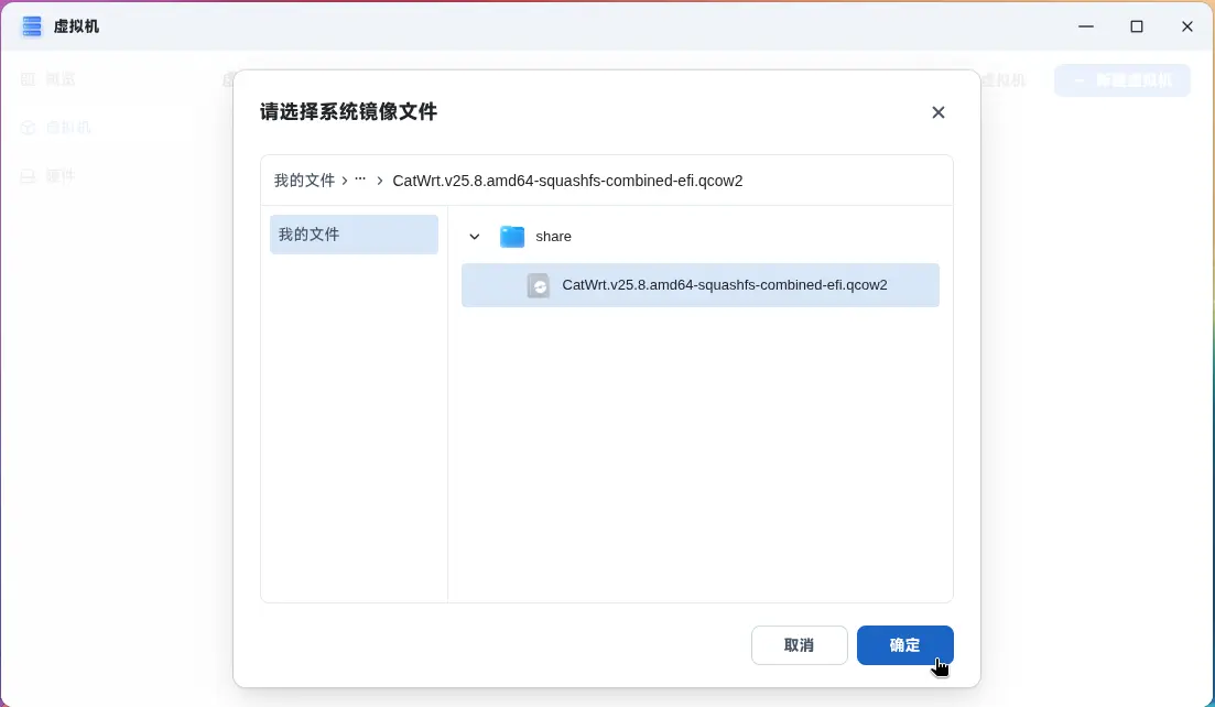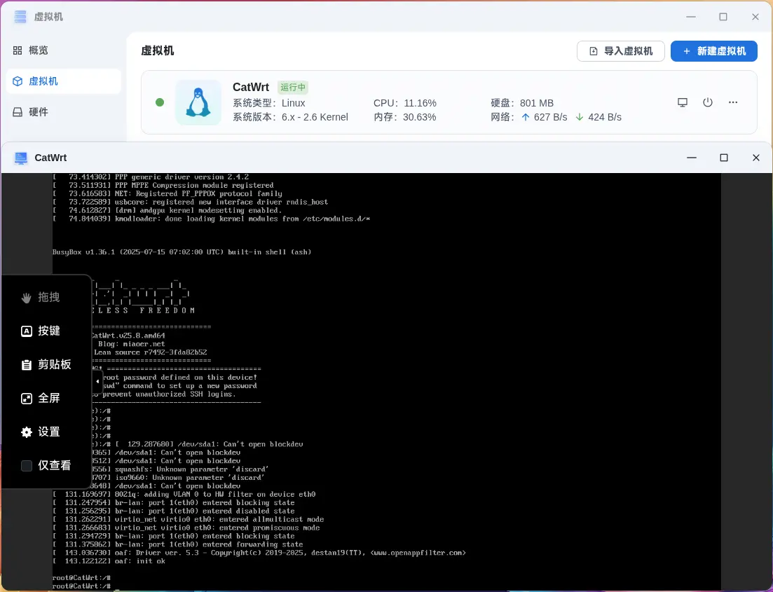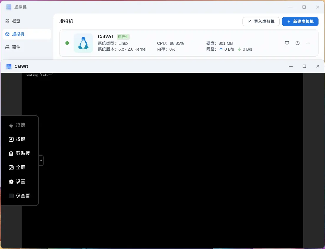 在虚拟机应用中打开 CatWrt(OpenWrt)虚拟机
