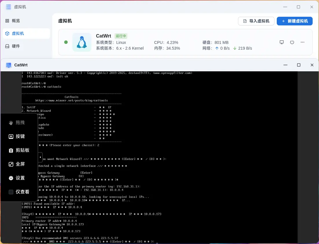 飞牛 fnOS 安装 CatWrt 虚拟机 OpenWrt 旁路网关(旁路由)